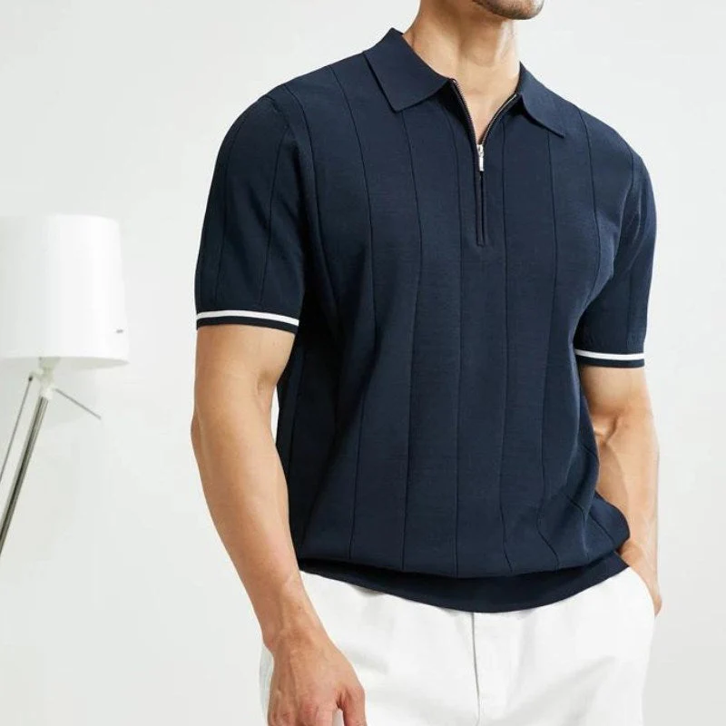 Subtle ribbing adds to the comfort of this polo shirt, crafted from breathable cotton and featuring a short, sporty zipper.